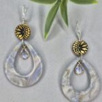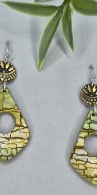 These one-of-a-kind, polymer clay earrings are handcrafted using the mokume gane technique, a decorative process that layers thin sheets of colored clay. The stacked layers are textured, compressed, and carefully sliced to reveal intricate, one-of-a-kind patterns. The handcrafted bronze pieces and cubic zirconia charms add a touch of elegance. Finished with sterling silver lever-back ear wires, they offer secure and comfortable wear. Measuring 2 1/4″ long, these earrings make a graceful statement without feeling heavy.
