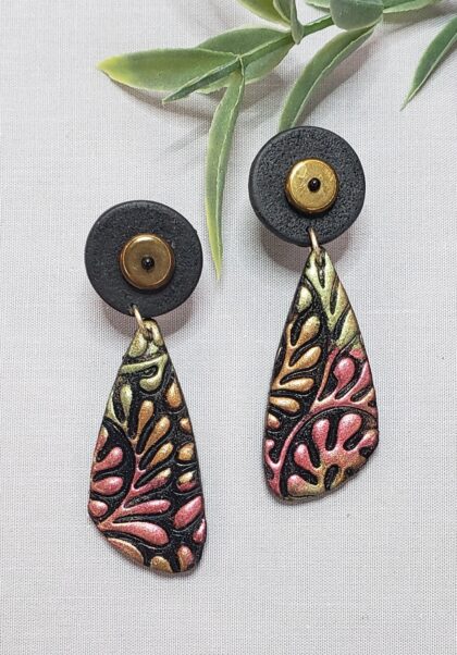 Fall in love with the colors on these lightweight polymer clay earrings. The raised design is created using rubber stamp sheets, then hand-painted with soft pastels and shimmering mica powders for vibrant color and a luminous shine. Finished with hypoallergenic stainless steel posts, these studs are lightweight and comfortable enough for all-day wear.