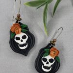 Spooky meets stylish with these handcrafted polymer clay skeleton-framed earrings, adorned with flowers. Perfect for Halloween fun, they’re lightweight and comfortable for all-day wear. Earring wires are hypoallergenic stainless steel for comfort and durability. Earrings measure 2″ long.